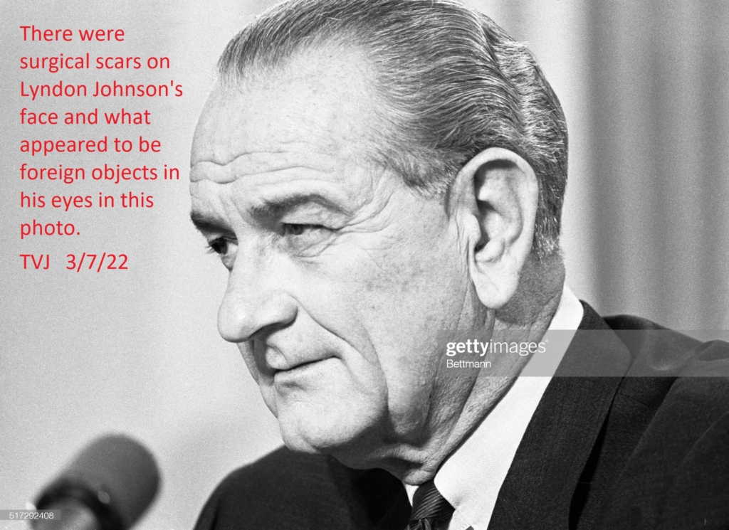 There were surgical scars on Lyndon Johnson’s face and what appeared to be foreign objects in his eyes in this photo.