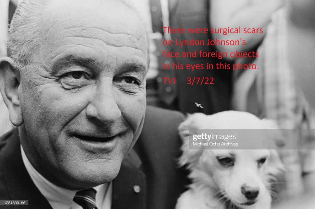 There were surgical scars on Lyndon Johnson’s face and foreign objects in his eyes in this photo.
