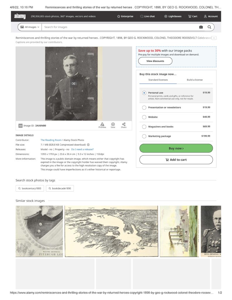 “Reminiscences and thrilling stories of the war by returned heroes . COPYRIGHT, 1898, BY GEO G. ROCKWOOD, COLONEL THEODORE ROOSEVELT Celebrated Commander of the Rough Riders. BRIGADIER-GENERAL LEONARD WOOD MILITARY GOVERNOR (.F SANTIAGO.
