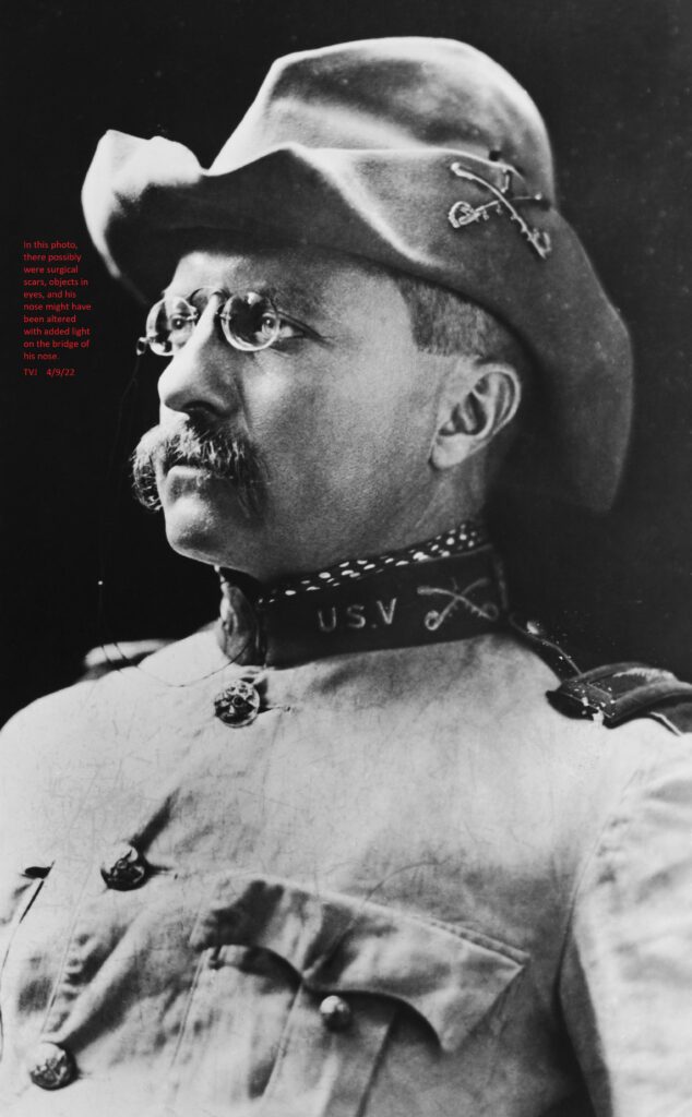 In this photo, there possibly were surgical scars, objects in eyes, and his nose might have been altered with added light on the bridge of his nose.
