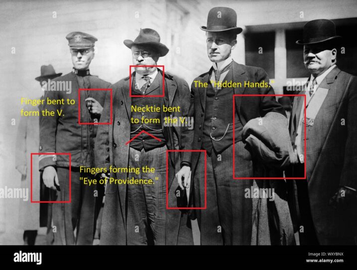 Fingers curved to form the “Eye of Providence.”