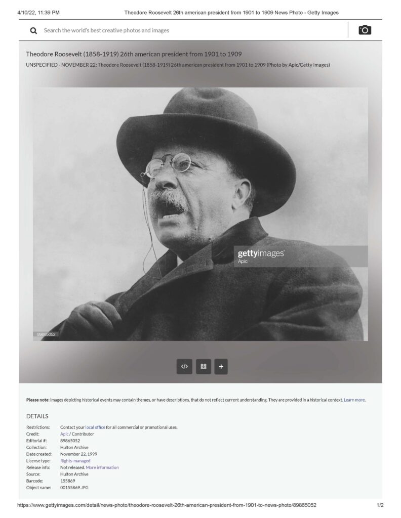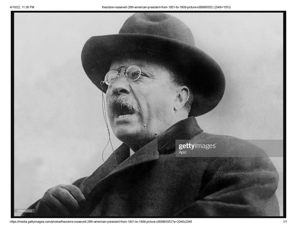 UNSPECIFIED – NOVEMBER 22: Theodore Roosevelt (1858-1919) 26th american president from 1901 to 1909 (Photo by Apic/Getty Images). Date created: November 22, 1999.”