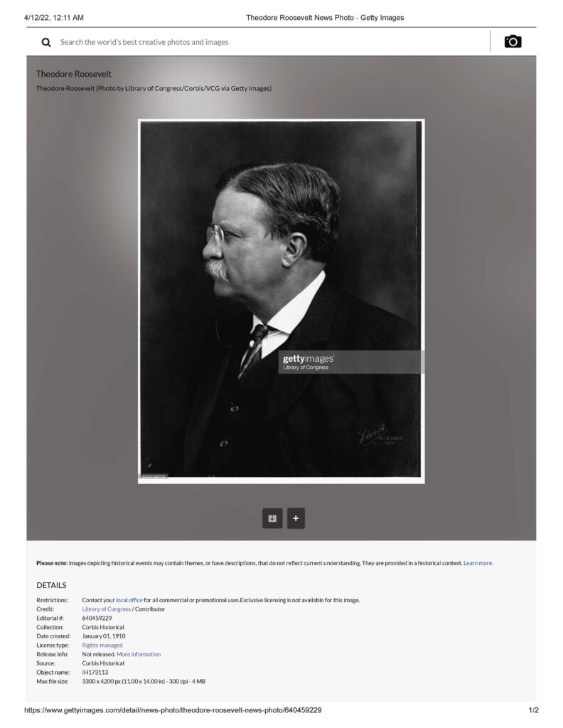 “Theodore Roosevelt (Photo by Library of Congress/Corbis/VCG via Getty Images). Date created: January 01, 1910.”