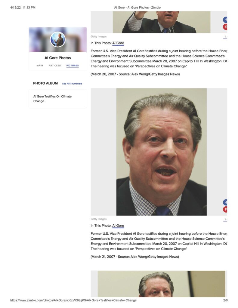 Former U.S. Vice President Al Gore testifies during a joint hearing before the House Energy Committee’s Energy and Air Quality Subcommittee and the House Science Committee’s Energy and Environment Subcommittee March 20, 2007 on Capitol Hill in Washington, DC. The hearing was focused on ‘Perspectives on Climate Change.’