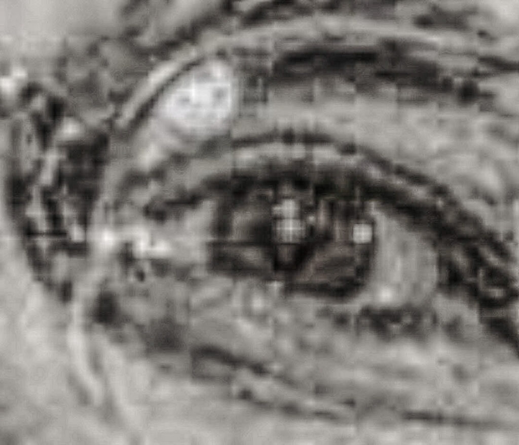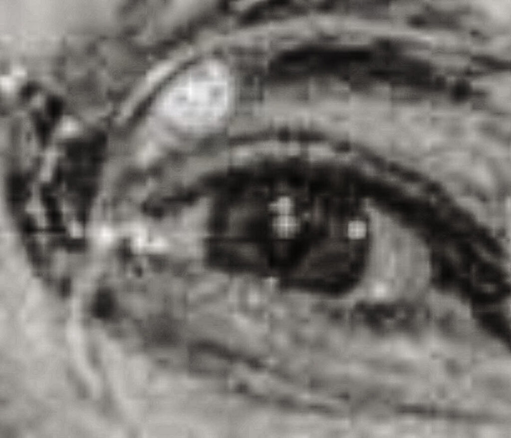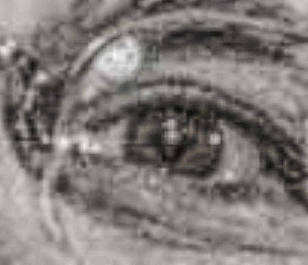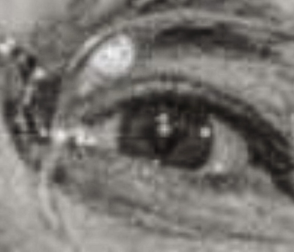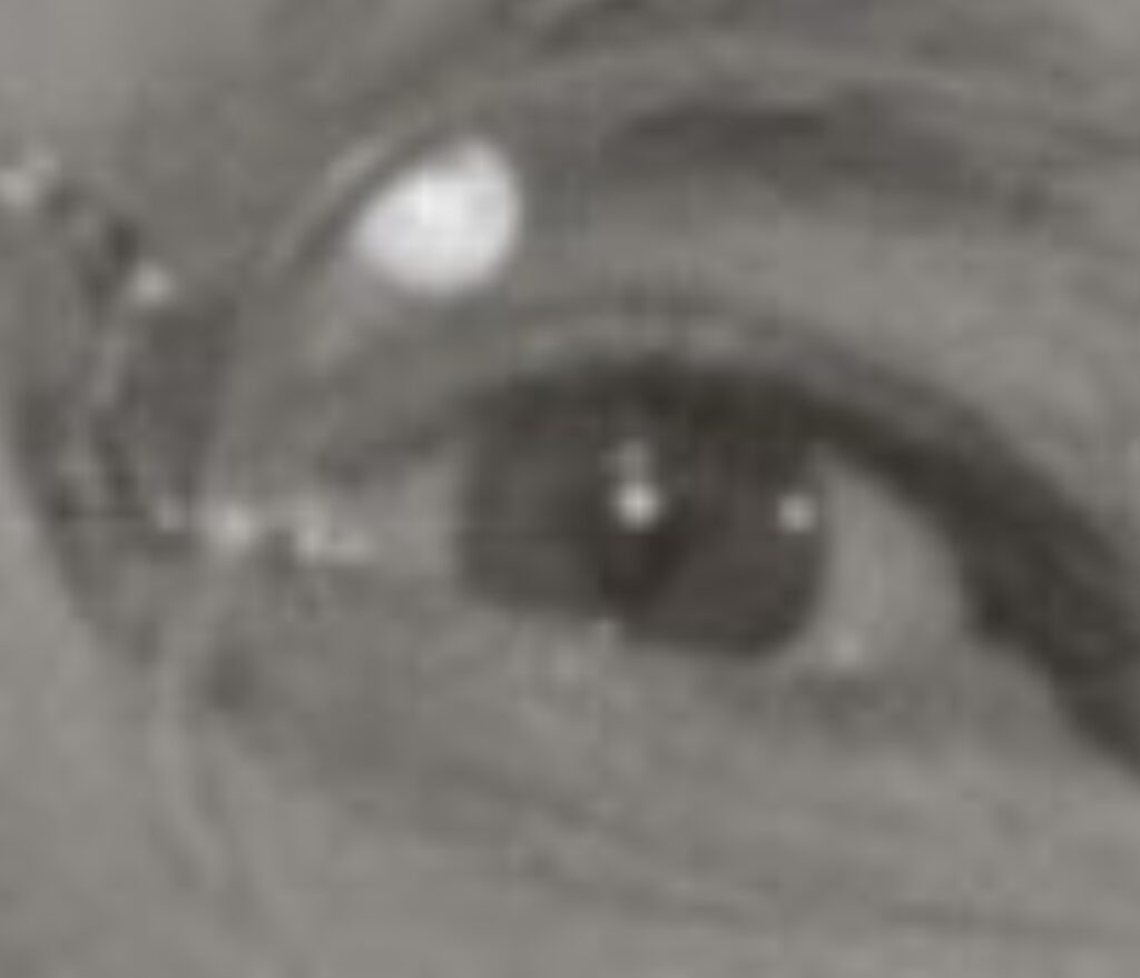 There were objects in Robert S. McNamara’s eyes and surgical scars on his face in this photo. Robert S. McNamara was the U.S. Secretary of Defense during the Vietnam Era.